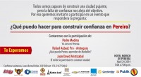 Acompáñanos este miércoles a conocer el proyecto Yo Creo en Pereira, que apoya Pereira Cómo Vamos y la Cámara de Comercio de Pereira, y vincúlate al Equipo de Voluntarios. Te esperamos de 7:00p.m. a 9:00p.m. en la Cámara de Comercio de Pereira, Salón de Conferencias 2. Contaremos con la presencia de Pedro Medina presidente de Yo Creo en Colombia Participa activamente para hacer de Pereira una ciudad mejor.