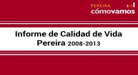 Ver Informe de Calidad de Vida completo Ver Infografías / resumen de los resultados Ver presentación realizada por Alejandro García Ríos Con la participación de la academia, gremios, funcionarios públicos, medios de comunicación y ciudadanía en general, Pereira Cómo Vamos presentó el informe de Calidad de Vida de Pereira 2008 - 2013. El informe reveló que el 65,4% de la población pereirana se encuentra afiliada al régimen contributivo en salud, porcentaje que disminuye frente al su