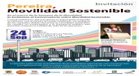 (Pereira, 24 de septiembre de 2013) Con una masiva asistencia de público se realizó el primer conversatorio sobre Movilidad Sostenible, evento programado por Pereira Cómo vamos que contó con el apoyo de la Cámara de Comercio de Pereira, el colectivo Espacio & Ciudad, el programa Cultura de la Legalidad, el Área Metropolitana Centro Occidente, el Instituto Municipal de Tránsito de Pereira y el Instituto Municipal de Cultura y Fomento al Turismo. El evento contó con la participación de