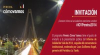 Este jueves 6 de noviembre, el programa Pereira Cómo Vamos hará la presentación pública del Informe de Calidad de Vida de 2014. El evento tendrá lugar en el Auditorio de la Cámara de Comercio de Pereira a partir de las 8:00 a.m. y posteriormente se realizará un conversatorio en el que entidades como Megabús, la Policía Metropolitana y la Alcaldía tendrán la oportunidad de presentar sus planes de acción en pro de la ciudad. Dicho conversatorio será moderado por Juan Guillermo Ángel
